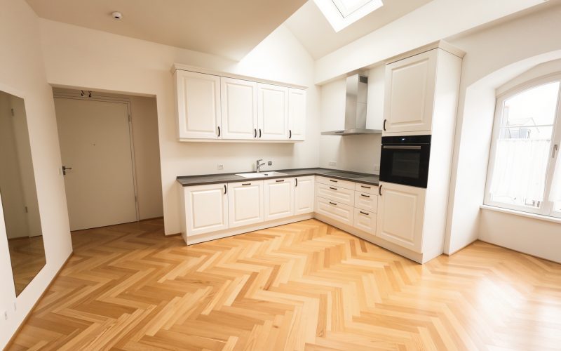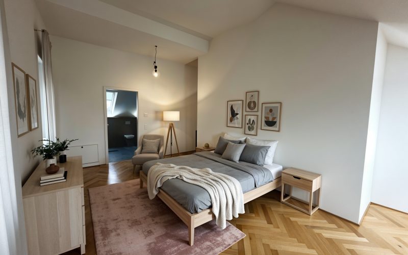 Bequem mit dem Aufzug erreichen Sie Ihre Wohnung im lichtdurchfluteten 3. Obergeschoss, das mit einer aufwendig kernsanierten Loft-Atmosphäre überrascht. Großzügige Fenster lassen die Räume in warmem Tageslicht erstrahlen, während hochwertige Materialien und stilvolle Details für ein luxuriöses Wohngefühl sorgen.